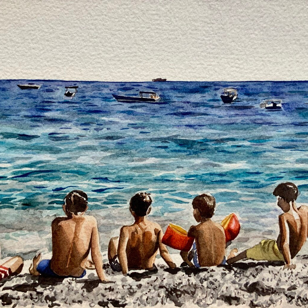 Holidays hold their own special type of nostalgia. A demarcation to everyday life, they are not only important to our own personal journeys but also a vital part of our shared life experience with those we love. I create these small watercolour scapes as a record of memorable times away from home. The miniature scenes I paint are like snapshots through the viewfinder of a camera - capturing the essence and energy of a moment rather than its entirety. The movement of watercolour gives each piece the energy of a lived moment. The transparency invokes wistful memory. These small paintings are both fleeting impressions and enduring records at once; an ode to remembering the most special times shared with those we love.