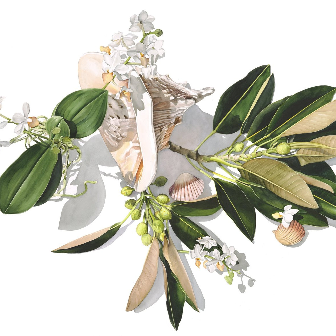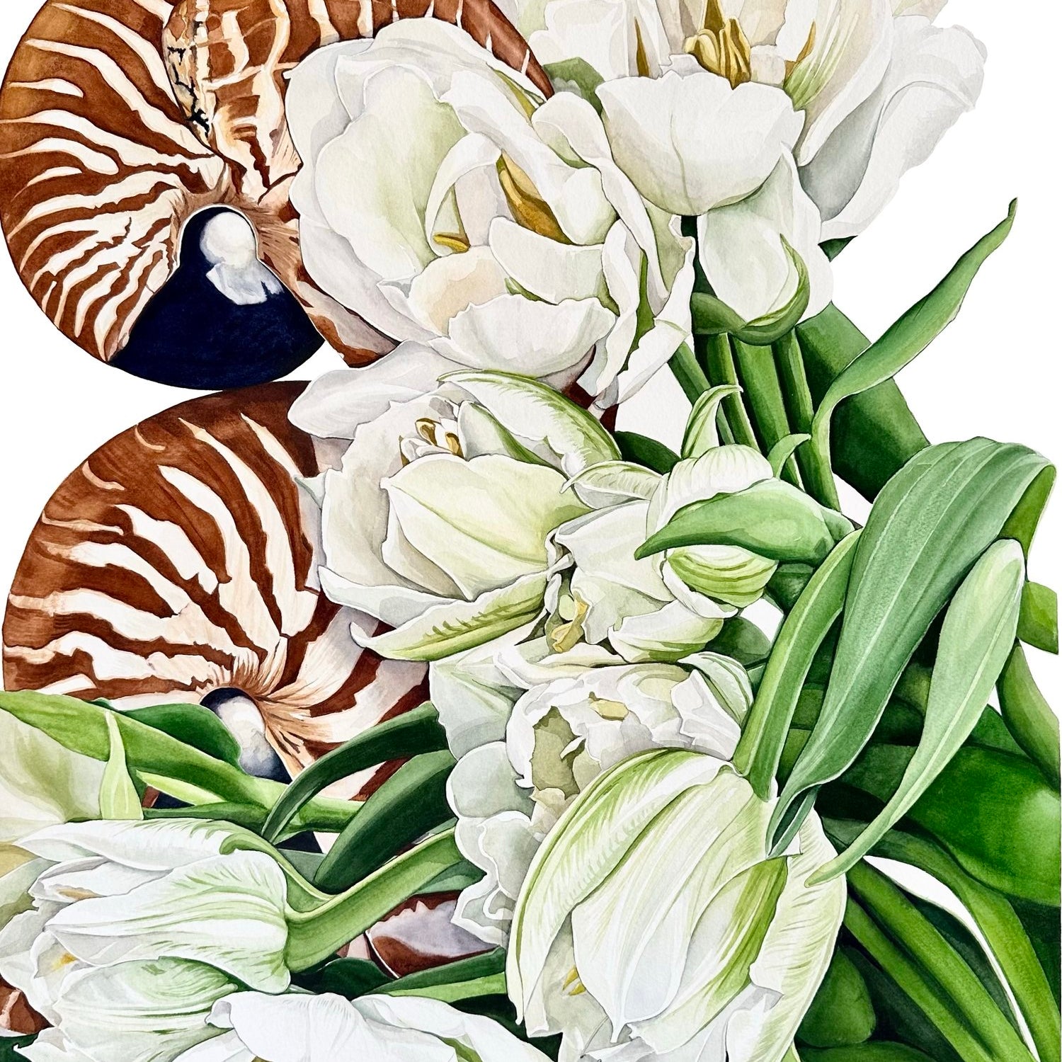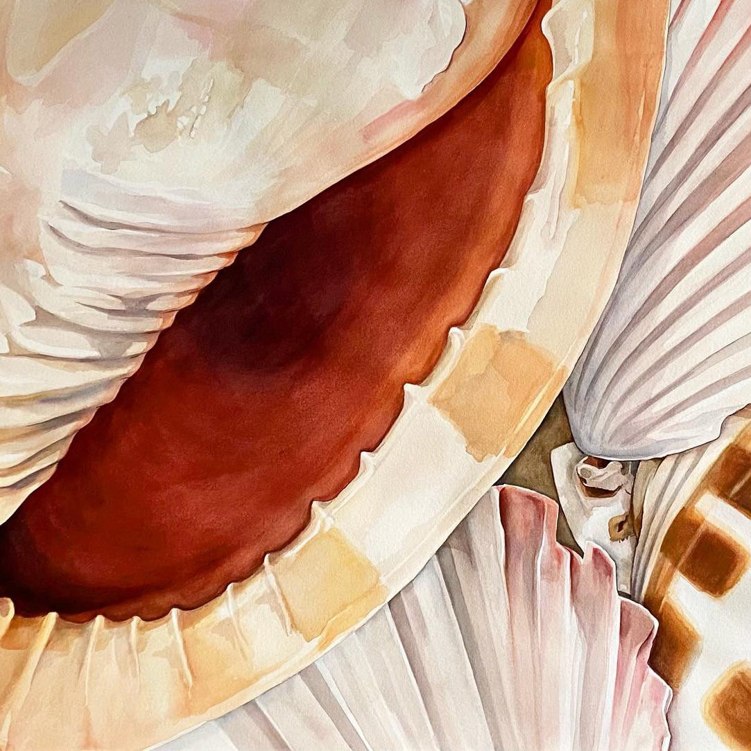 The prevailing intention of my still life work is to give space for the simple appreciation and connection with the beauty of nature. Painted from a combination of life and photographs, my still life works feature subjects of the Earth like shells, flowers, plants, fruit and vegetables.